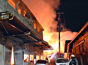 17日午前4時15分ごろ、会津美里町、会社役員、男性(63)方から出火、3階建ての住宅兼倉庫約600平方メートルと、隣接する木造2階建ての空き家約330平方メートルを全焼した。このほか、隣接する土蔵の壁など約65平方メートルを焼いた。住宅兼倉庫の焼け跡から1人の男性の遺体が見つかった。63歳男性と連絡が取れないことから、会津若松署は遺体が間部さんとみて、身元の確認を進めている。