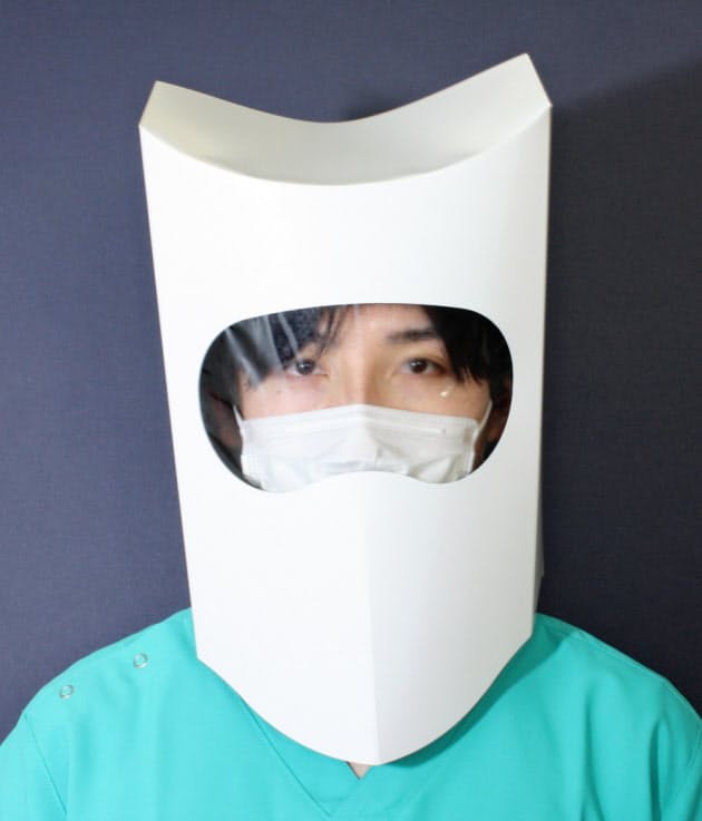 商品外装を企画・製造するサガシキ(佐賀市)は頭から首元まで覆う紙製の防護用マスク(頭巾)を、4月末から販売する。新型コロナウイルスの感染拡大で防護服が不足する医療現場を支援するため、佐賀大学と共同開発した。使い捨てで、一般的なフェースシールドではカバーできない頭部から首元も覆える。1日2万枚を製造し、需要に応じて月産100万枚まで増やす。